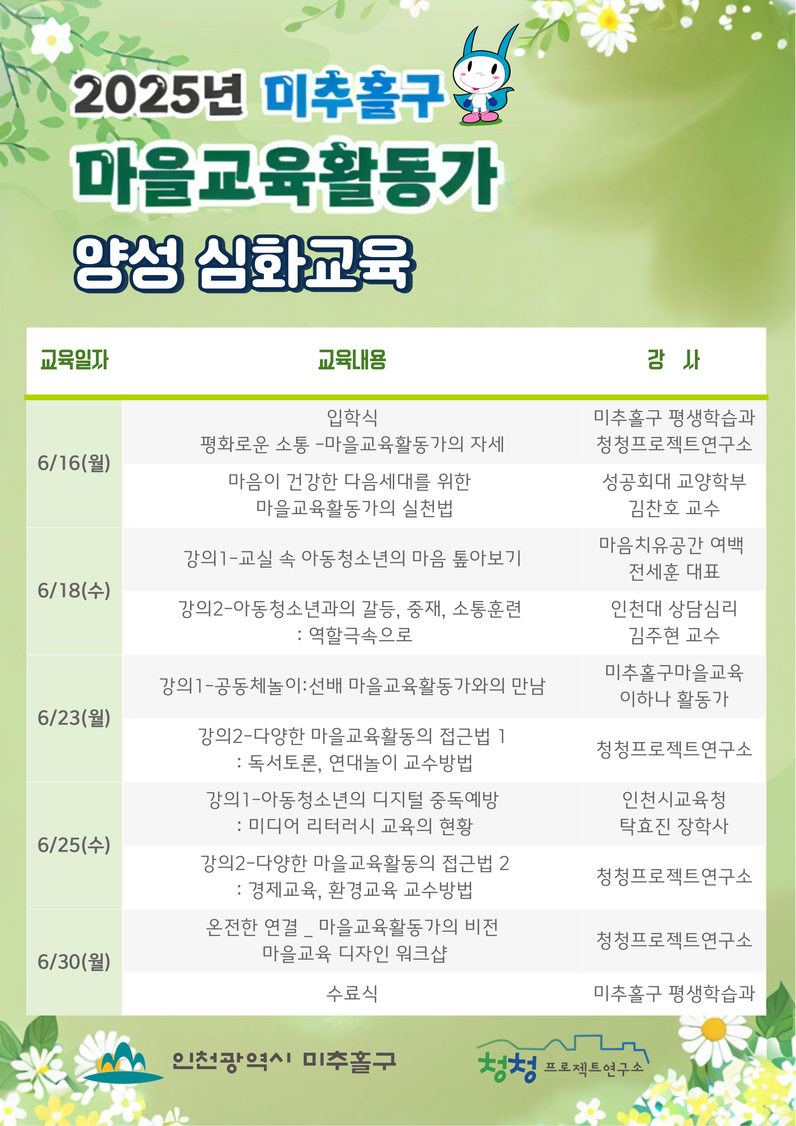 2025미추홀구 마을교육활동가 양성 심화교육 진행됩니다.